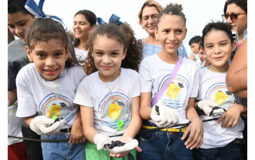 Como parte de esta acción de educación ambiental, se liberaron simbólicamente 100 tortuguillos de la especie Paslama, un acto que refleja el compromiso de las Familias y Comunidades con la preservación de estas especies milenarias en peligro de extinción.