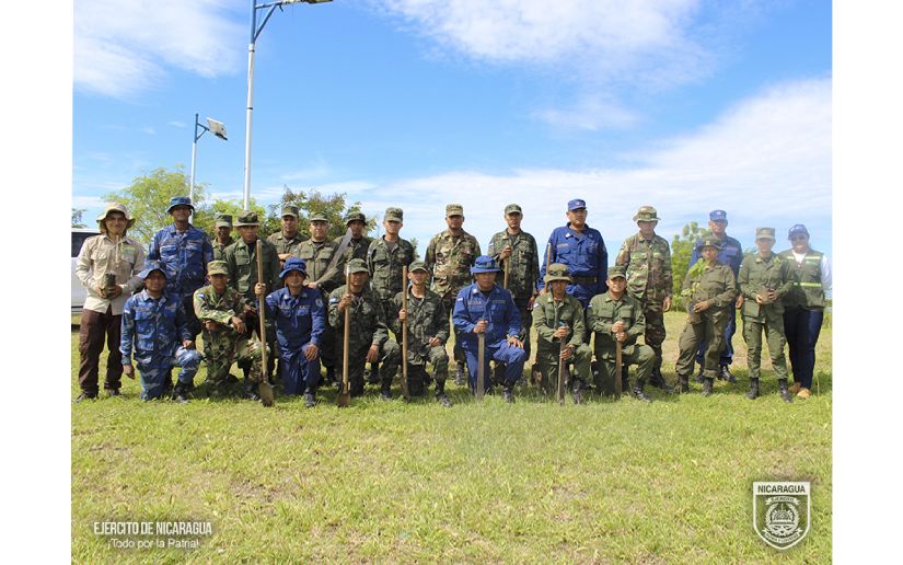El Ejército de Nicaragua consecuente con el lema de que “Somos el Pueblo mismo uniformado, trabajando en su propio beneficio”, el 23 de noviembre de 2024, a través de la Escuela Nacional de Sargentos “Sargento Andrés Castro” (ENSAC), en coordinación con el Ministerio del Ambiente y los Recursos Naturales (MARENA), participó en jornada de reforestación ambiental, en el mirador de la laguna de Apoyeque, municipio de Mateare, departamento de Managua.
