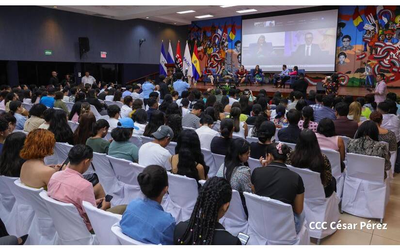 El Compañero Daniel Edmundo Ortega saludó a todas las personalidades presentes en el acto, en especial a los hermanos de la Agencia de Noticias Sputnik; a los jóvenes estudiantes de Comunicación de la UNAN-Managua, de la Universidad Nacional Casimiro Sotelo y de los distintos recintos universitarios que participaron conectados, de manera virtualmente; así como a los Comunicadores Sandinistas de Nicaragua Libre y Digna, Comunicadores Patrióticos.