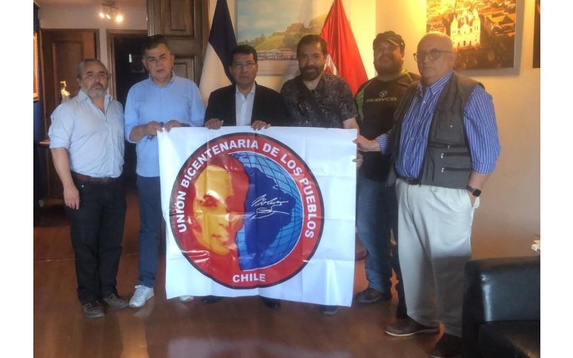 El Compañero Jorge Gálvez, Presidente de la Unión Bicentenaria de los Pueblos, Capítulo Chile, realizó visita de trabajo y cortesía a la Embajada de Nicaragua en Santiago. Se hizo acompañar de Compañeros Miembros del Directorio de esta importante Organización: Esteban Ramírez, Leonardo Terraza, Héctor Medina, Vladimir Manríquez.