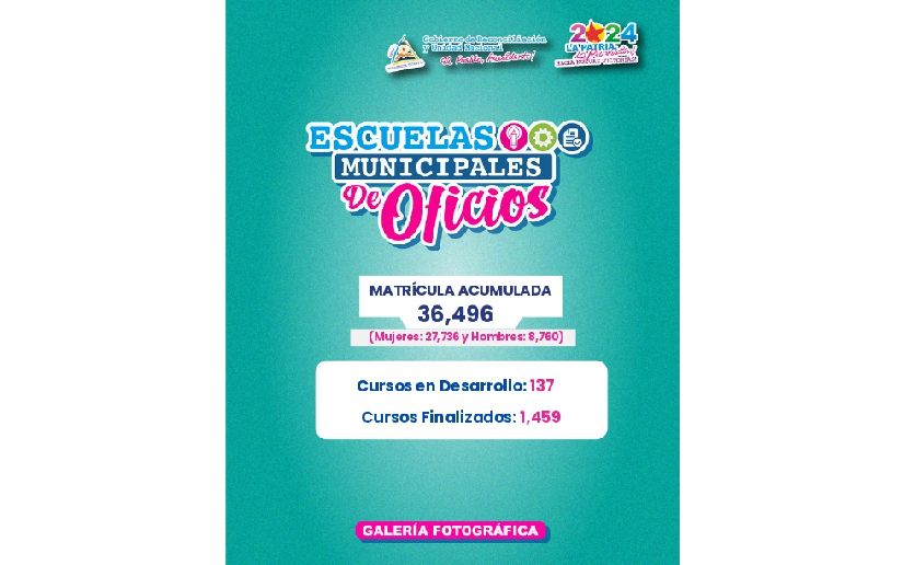 Avances hasta esta fecha sobre las matrículas en las distintas Escuelas Municipales de Oficios, siendo estas: