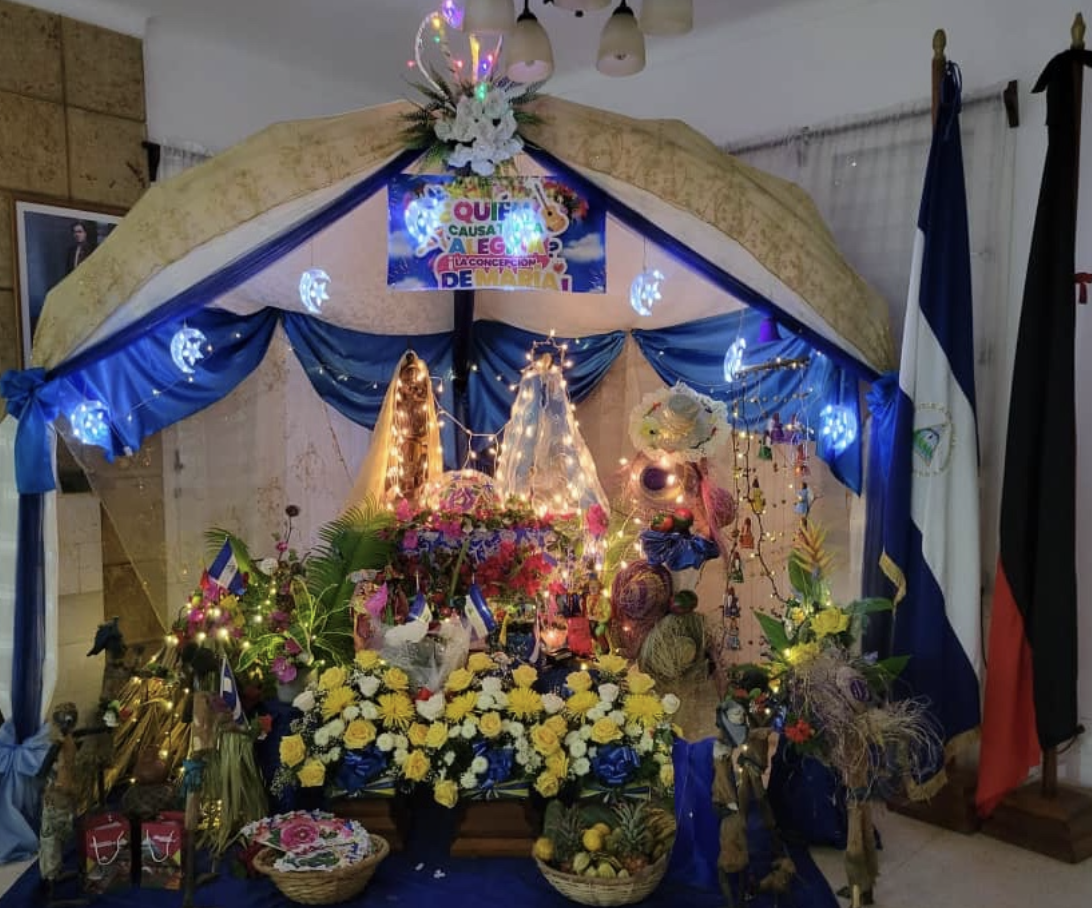 Frente al colorido Altar de Honor a la Patrona de Nicaragua, creación resultado de la devoción de manos nicaragüenses y de los artistas cubanos, Alexis Cardona y Ricardo Perez Machin, que solidariamente colaboraron con su arte y, al grito de ¿Quién causa tanta Alegría? ¡La Concepción de María! nuestra Embajadora, Compañera Guisell Morales Echaverry, acompañada del Compañero Adrián Carrasco Zanini, Co-Director de Cinemateca, dio inicio a esta hermosa Fiesta Nacional, transmitiendo el saludo fraterno de nuestro Presidente-Comandante Daniel Ortega y de nuestra Vicepresidenta, Compañera Rosario Murillo.