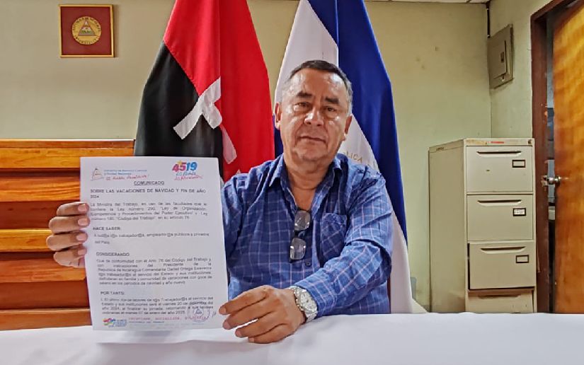 El Ministerio del Trabajo (Mitrab) a través del Secretario General José León Argüello, dio lectura al comunicado de las vacaciones de Navidad y Fin de Año 2024 para los trabajadores, empleadores públicos y privados del país.