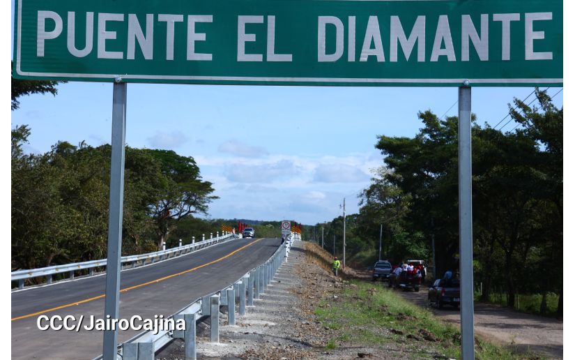 El Ministro de Transporte e Infraestructura, General en Retiro Óscar Mojica, expresó que la construcción del nuevo Puente El Diamante de 61 metros de longitud y que sustituye la estructura que colapsó por el huracán Julia en noviembre de 2022, es uno de los 58 puentes y caja puentes construidos en el departamento de Chontales.
