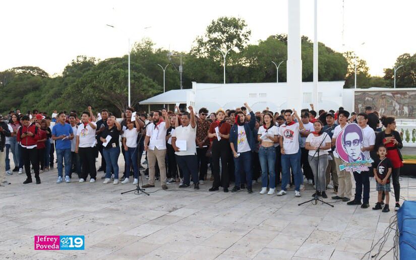 Su legado cultural y político resuena con fuerza en el corazón de quienes hoy, en la Loma de Tiscapa, se reunieron al pie del monumento del General de Hombres y Mujeres Libres para rendirle homenaje recitando su poema “Como los santos”.