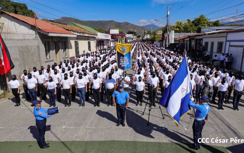 La jefatura de la Policía Nacional presentó y juramentó a la Policía Voluntaria de Ocotal, departamento de Nueva Segovia "Comandante Julio Buitrago Urroz" quienes tendrán el compromiso de apoyar en la defensa de la paz, la soberanía y la tranquilidad de las familias en Nicaragua.