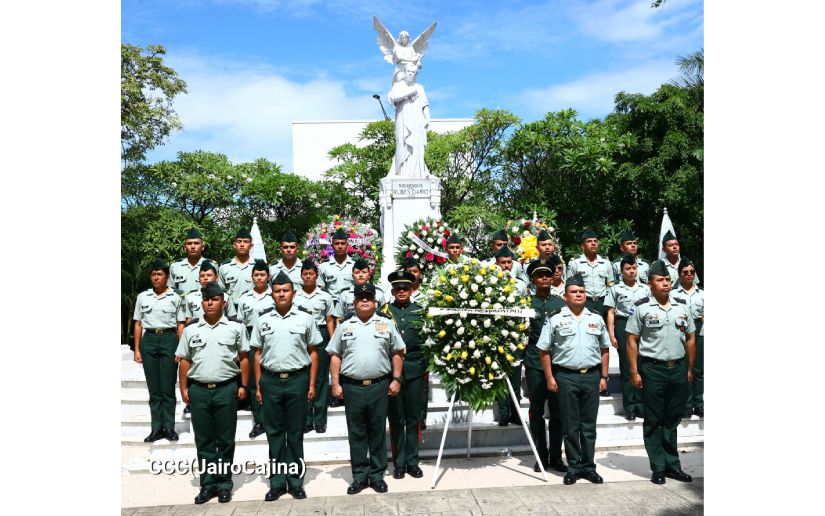 La Jefatura de la Policía Nacional, encabezada por el Primer Comisionado Francisco Díaz Madriz, depositaron ofrendas florales en el monumento del Héroe Nacional y Príncipe de las Letras Castellanas Rubén Darío.