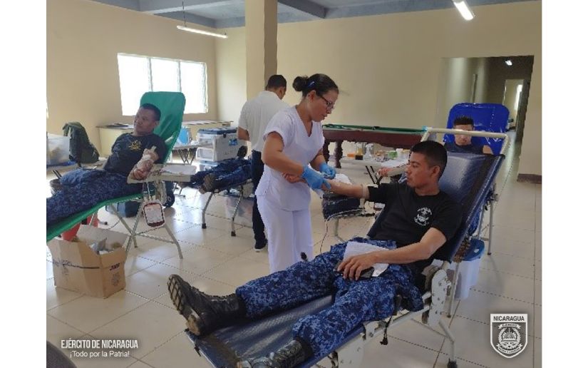 El Ejército de Nicaragua consecuente con el lema de que “Somos el Pueblo mismo uniformado trabajando en su propio beneficio”, el 17 de enero de 2025, a través del Segundo Batallón de Tropas Navales, en coordinación con el Banco Nacional de Sangre del municipio de Nagarote, departamento de León, participó en jornada de donación voluntaria de sangre.