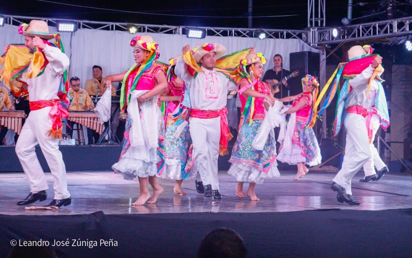 La presentación, acompañada de artistas de la marimba y otros instrumentos musicales, fue compuesta de un total de 23 números folclóricos.