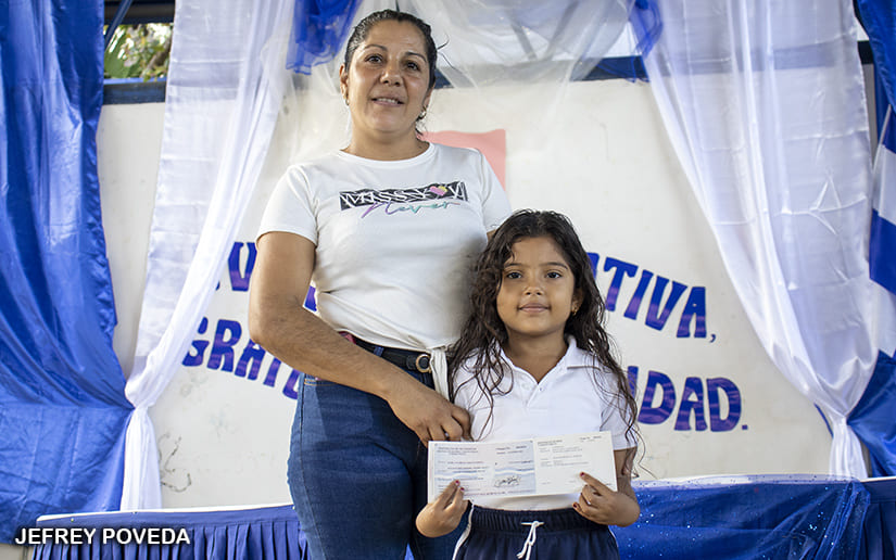 "Le agradezco al Presidente Daniel y a Dios que me hayan dado este bono para comprarle los útiles escolares a mi hijo, es una gran ayuda para mí como madre que soy de bajos recursos. No me esperaba este anuncio del gobierno, pero gracias a Dios se entrega este dinero y pienso gastar todo este bono en mi hijo para que venga bien bonito a clase, para eso lo dio nuestra vicepresidenta y el presidente", Estefany Leiva, madre de Alberto Arias Leiva, quien este año cursa el tercer nivel.