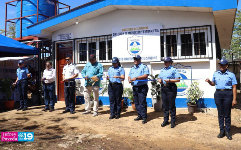 El Ministerio del Interior a través de la Dirección de Migración y Extranjería inauguró el puesto fronterizo marítimo en Puerto Sandino, municipio de Nagarote, en el departamento de León, espacio desde donde se garantizará el registro migratorio de los tripulantes de las embarcaciones de carga que arriban al país a través de este puerto.