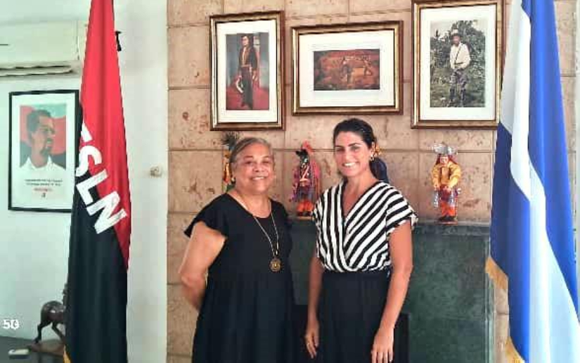 Asimismo, la Académica cubana expuso a la Embajadora, el trabajo de la Cátedra, como Centro de estudios sobre el Caribe, que realizan desde una perspectiva multidisciplinaria y en cooperación con otras entidades vinculadas al análisis de la realidad caribeña y expresó su deseo de estimular con nuestras Universidades y centros de educación superior, particularmente del Caribe, el intercambio de conocimientos. Asimismo, con la finalidad de generar un espacio para abordar los desafíos del Caribe, extendió invitación a nuestra academia, investigadores, escritores, intelectuales y dirigentes políticos caribeños, a participar en el Primer Coloquio “Identidad, Cultura y Desarrollo Sostenible, en un mundo en crisis: los desafíos del Caribe” a realizarse del 26 al 29 de Mayo 2025 en la Universidad de La Habana, así como a organizar actividades conjuntas, charlas, presentaciones de documentales, encuentros con la Cátedra y desarrollar otras iniciativas que contribuyan al conocimiento sobre el legado de resistencia y dignidad de nuestros pueblos originarios y afrodescendientes y su proceso autonómico; que sirvan para cimentar el encuentro del legado de dignidad que fraguan la orgullosa identidad de los pueblos de Cuba y Nicaragua y fortalecer la invencible e inclaudicable amistad y solidaridad de Cuba y Nicaragua, de sus pueblo y sus revoluciones.