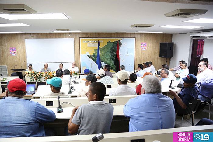 Los titulares del Ministerio Agropecuario y Forestal (MAGFOR), compañero Ariel Bucardo, el Ministerio de Fomento, Industria y Comercio (MIFIC), Orlando Solórzano, el Ministerio de Economía Familiar, Pedro Haslam y representantes de la empresa privada, sostuvieron un encuentro con los productores de arroz de todo el territorio nacional con el objetivo de enfrentar juntos las dificultades que presenta este importante sector productivo.