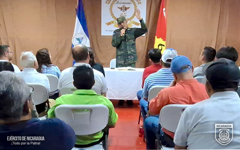 El Ejército de Nicaragua consecuente con el lema de que “Somos el Pueblo mismo uniformado trabajando en su propio beneficio”, el 19 de febrero de 2025, a través del jefe del 6 Comando Militar Regional, Coronel Inf. DEM Osmín Edgardo García, participó en reunión con 50 representantes de las empresas exportadoras de café, comerciantes y transportistas de los departamentos de Matagalpa y Jinotega, con el objetivo de evaluar el desarrollo y cumplimiento del Plan de Protección y Seguridad de la Cosecha Cafetalera, Ciclo Productivo 2024-2025, escuchar sus planteamientos y coordinar aspectos relacionados a la seguridad en el campo, lucha contra el abigeato y protección del ambiente y los recursos naturales.