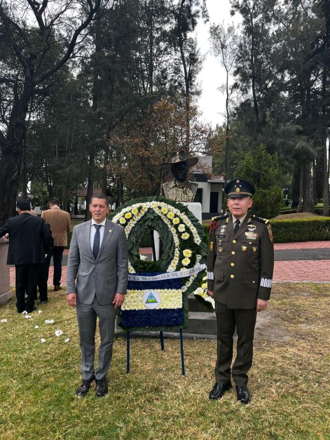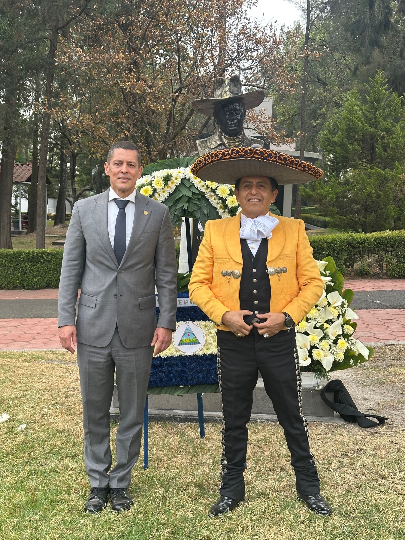 El Compañero Juan Carlos Gutiérrez Madrigal, Embajador de Nicaragua en México, expresó que el General Augusto C. Sandino con Suprema Valentía defendió, hasta las últimas consecuencias, la Dignidad y la Soberanía de la Patria, comprendió que la lucha no solo se libra con armas, sino con espíritu y convicción, luchó por una Nicaragua Libre y Soberana, su entrega inquebrantable lo convirtió en Símbolo de Lucha y Esperanza, no solo para su Tierra, sino para el Mundo entero, porque cuando el Amor a la Patria se convierte en Causa, el Pueblo se convierte en una Fuerza imparable; que nuestro GRUN continúa con la Revolución iniciada por el General Augusto C. Sandino, con su Legado de Dignidad, Valentía y Lucha a través de Transformaciones notables, Logros, Avances, Triunfos y Victorias en todos los sectores de la Vida Nacional.