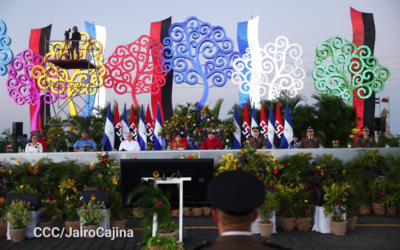 El acto es presidido por el Copresidente, Comandante Daniel Ortega, y Copresidenta, Compañera Rosario Murillo.