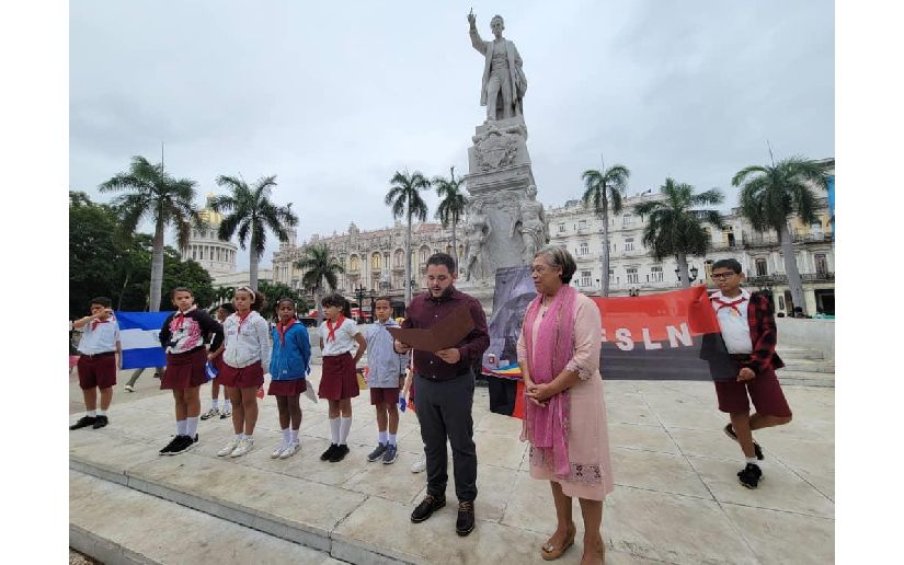 Por la mañana, nuestra Embajadora, Compañera Guisell Morales Echaverry, frente a la estatua del Apostol José Martí en el Parque Central de la Habana, ofrendó flores para el General de Luz y Verdad, que ilumina el siempre Más Allá de nuestra Revolución, junto al diputado cubano Danhiz Díaz, Presidente del Grupo Parlamentario de Amistad con Nicaragua, que dio lectura a declaración de este Grupo, que resaltó el significado histórico de la lucha y resistencia antimperialista del General Augusto C. Sandino, para Nicaragua y el mundo y un grupo pioneros de la Escuela Primaria “Augusto C. Sandino”, de Fontanar, quienes dedicaron versos al Capitan del Pueblo.