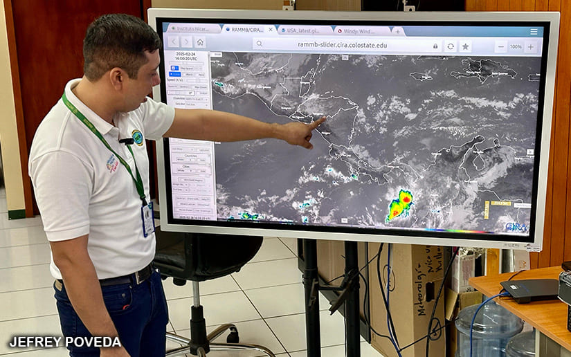 "A partir del miércoles hasta el fin de semana lo que tendremos es influencia indirecta de un frente frío, esto al igual que la semana pasada influirá en el aceleramiento de los vientos. Vamos a mantener vientos de moderados a ocasionalmente fuertes con velocidad de hasta 60 kilómetros por hora y un oleaje que rondará hasta 2.5 metros en los litorales, principalmente en la parte sur del litoral, es decir, la costal del Caribe Sur y las costas del Istmo de Rivas", aseguró el especialista.