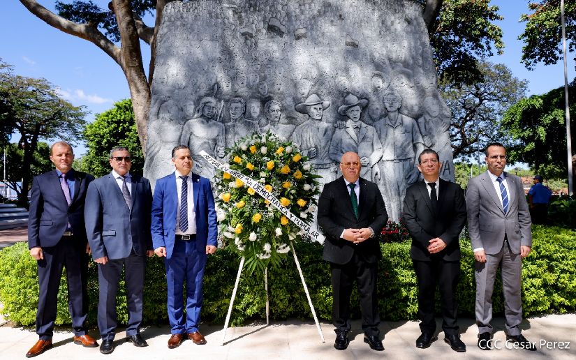 La Delegación de la República Argelina Democrática y Popular, encabezada por el señor Laïd Rebiga, depositó este lunes 24 de febrero una ofrenda floral en el Monumento de los Héroes de la Patria, contiguo a la Plaza de la Revolución, en Managua.