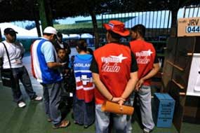 Desde las primeras horas de este domingo, miles de personas se concentraron en las afueras de los mil 591 centros de votación, para asumir sus responsabilidades en las mesas de votación.