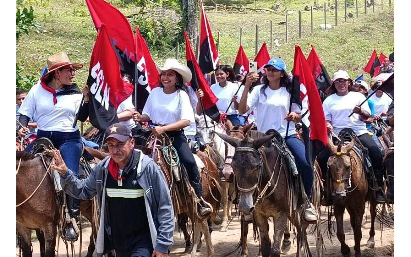 Los Comunitarios, productores, hombres y mujeres, niños y niñas del Campo caminaron y cabalgaron 2 kilómetros, con mucha alegría y mística revolucionaria recordando el Legado Histórico de nuestro General.