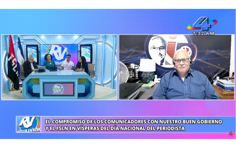 Este viernes, en la Revista en Vivo de Canal 4, se abordó el compromiso de los comunicadores nicaragüenses con el Gobierno de Reconciliación y Unidad Nacional y el Frente Sandinista de Liberación Nacional, FSLN, en la víspera de la celebración del Día Nacional del Periodista.