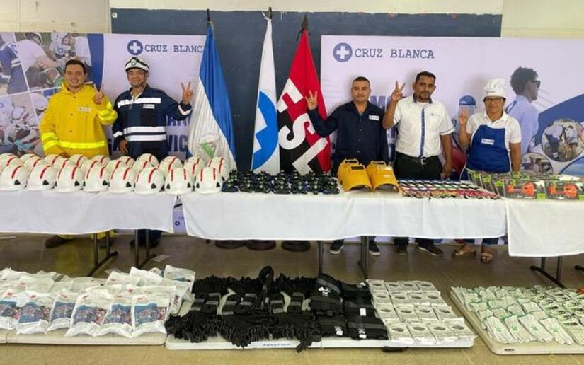 Los equipos incluyen: guantes, botas, linternas, cascos de seguridad, lámparas, lentes y máscaras antigás, reforzando la seguridad del personal que atiende emergencias y protege a las familias nicaragüenses ante situaciones de riesgo.