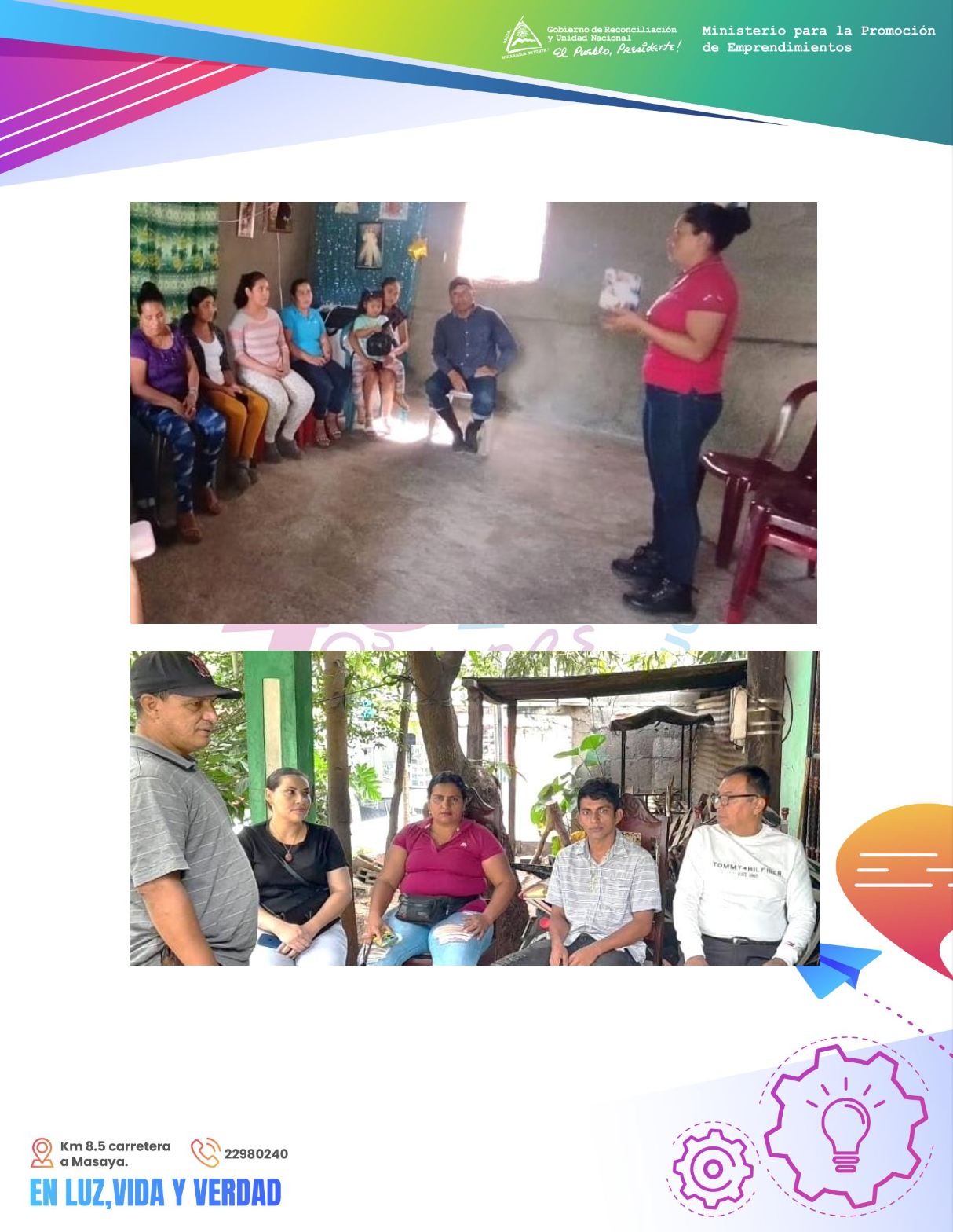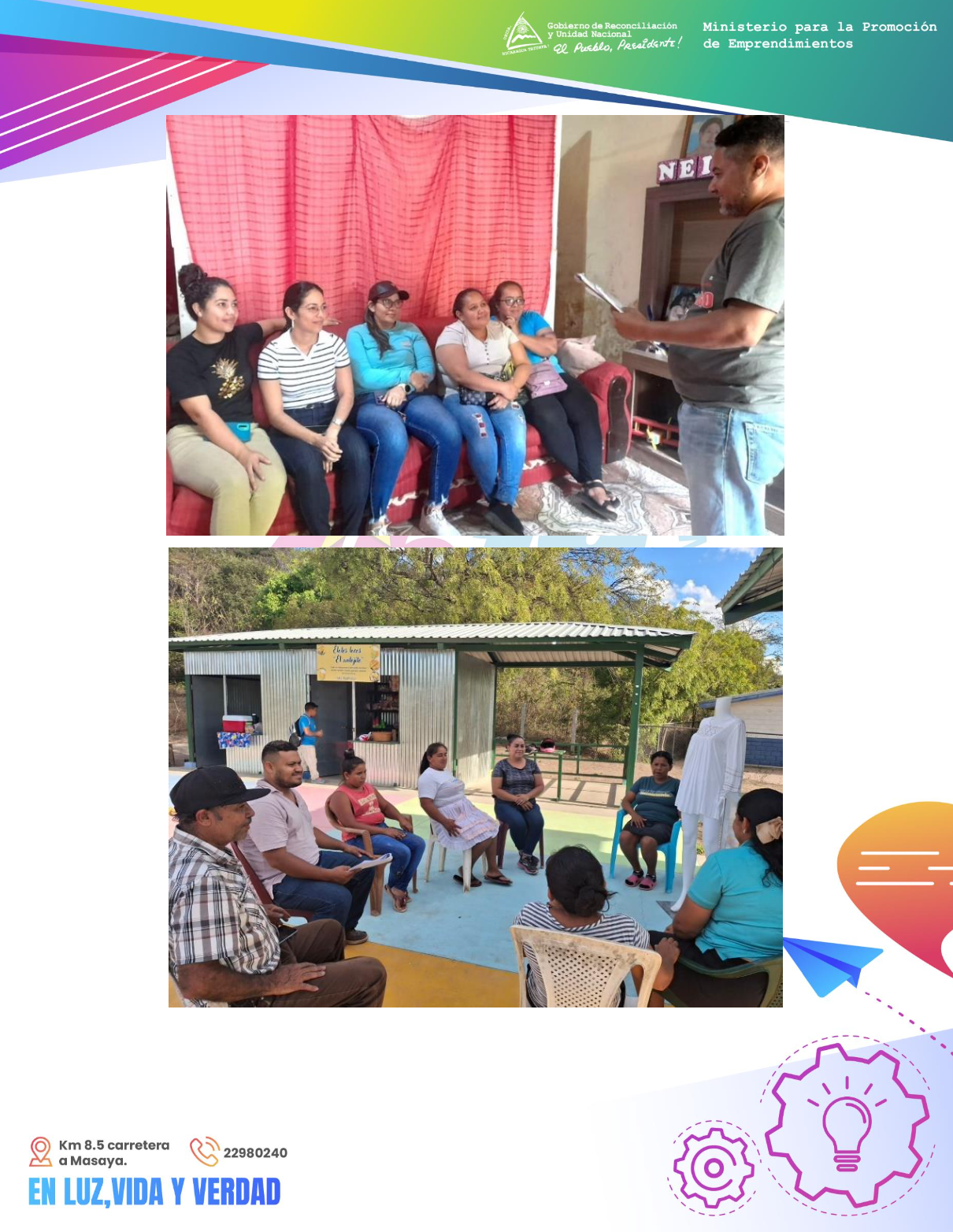1. Charlas motivacionales “Aprendiendo a emprender”, con emprendimientos de los departamentos de Carazo, Chinandega, Chontales, Estelí, Granada, Jinotega, León, Madriz, Managua, Masaya, Matagalpa, Nueva Segovia, RACCN, RACCS, Río San Juan, Rivas y Zelaya Central.