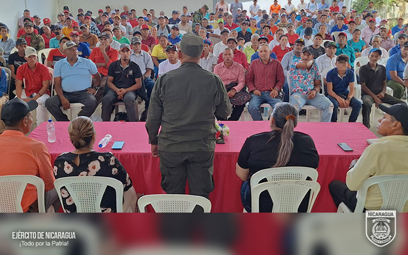 El Ejército de Nicaragua consecuente con el lema de que “Somos el Pueblo mismo uniformado trabajando en su propio beneficio”, el 5 de marzo de 2025, a través del jefe del Estado Mayor del 6 Comando Militar Regional, Teniente Coronel Inf. DEM Rodolfo Antonio González, participó en reunión con autoridades municipales, comerciantes y 298 productores de los municipios de Wiwilí y Santa María de Pantasma, departamento de Jinotega, con el objetivo de evaluar y escuchar sus planteamientos relacionados al fortalecimiento del Plan Permanente de Seguridad en el Campo, Plan de Protección y Seguridad de la Cosecha Cafetalera, Plan de Lucha Contra el Abigeato, Plan de Protección de los Recursos Naturales y el Ambiente.