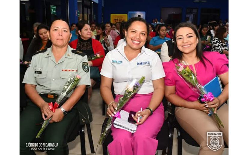 En cumplimiento a la orden del Comandante en Jefe de las Fuerzas Militares del Ejército de Nicaragua, General de Ejército Julio César Avilés Castillo, de avanzar en la mejora continua del proceso educativo en la Universidad de Defensa de Nicaragua “4 de mayo” (UDENIC), el 6 de marzo de 2025, en el auditorio “Elena Arellano” del Ministerio de Educación (MINED), participó en el Encuentro Nacional Protagonismo de la Mujer en el Sistema Educativo Nacional “Mujer, Educación y Revolución”, en el marco de la segunda fase de implementación de la Estrategia Nacional de Educación “Bendiciones y Victorias”, organizado por el Consejo Nacional de Universidades (CNU).