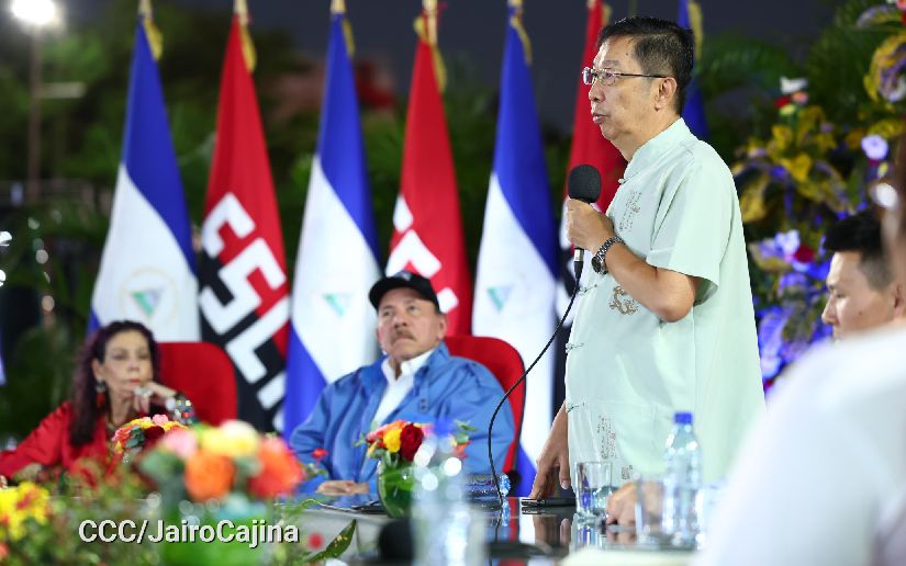 “China tenemos la voluntad de trabajar junto con nuestros hermanos nicaragüenses a desarrollar muchos otros proyectos, sobre todo, proyectos dedicados al sector social para que el pueblo nicaragüense pueda disfrutar de los beneficios de nuestra amistad, de nuestra hermandad. Todos vienen conociendo esa voluntad, esa amistad del pueblo chino, del gobierno chino, de trabajar junto con nuestros compañeros, nuestros hermanos nicaragüenses, también quiero aprovechar la ocasión para saludar con todo cariño, afecto a la heroica y gloriosa mujer nicaragüense representada por la Copresidenta Rosario Murillo y también nuestro gran homenaje, gran admiración a la mujer nicaragüense por su infinito, inmenso contribución a la Revolución nicaragüense, a la Revolución Sandinista y también al desarrollo, a la producción de Nicaragua, a la felicidad familiar de todo el pueblo nicaragüense”, finalizó.