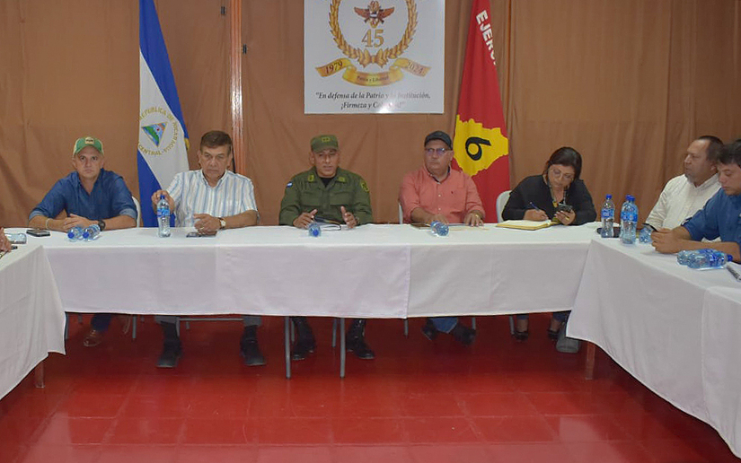 El Ejército de Nicaragua consecuente con el lema de que “Somos el Pueblo mismo uniformado trabajando en su propio beneficio”, el 14 de marzo de 2024, a través del jefe del Estado Mayor del 6 Comando Militar Regional, Teniente Coronel Inf. DEM Rodolfo Antonio González, participó en reunión con autoridades departamentales y municipales de Matagalpa y Jinotega, con el objetivo de evaluar y escuchar sus planteamientos relacionados al fortalecimiento del Plan Permanente de Seguridad en el Campo, Plan de Protección y Seguridad de la Cosecha Cafetalera, Plan de Lucha Contra el Abigeato y el Plan de Protección de los Recursos Naturales y el Ambiente.