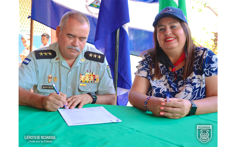 El Ejército de Nicaragua consecuente con el lema de que “Somos el Pueblo mismo uniformado trabajando en su propio beneficio”, el 19 de marzo de 2025, a través del jefe del Cuerpo de Ingenieros “General de Brigada Miguel Ángel Ortez y Guillén”, Coronel Ing. DEM Omar Joaquín Montenegro Martínez, participó en firma de convenio con la alcaldesa del municipio de Masaya, departamento de Masaya, doctora Janina del Socorro Padilla Noguera, para el desarrollo de un proyecto de rehabilitación y mejoramiento de camino rural.