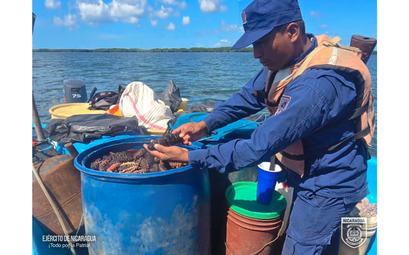 El Ejército de Nicaragua consecuente con el lema de que “Somos el Pueblo mismo uniformado trabajando en su propio beneficio”, el 18 de marzo de 2025, a través de sondeos rutinarios del Distrito Naval Caribe, en las coordenadas 14°20'00"N 082°50'00"W, a 5 millas náuticas al suroeste de Cayos Miskitos, Región Autónoma de la Costa Caribe Sur, retuvo a 6 ciudadanos nicaragüenses, quienes a bordo de 1 embarcación tipo panga de nombre “CAP. CHARLY”, trasladaban de manera ilegal pepinos de mar de las especies “Pikachu” y “Café”, mismos que se encuentran en período de veda.
