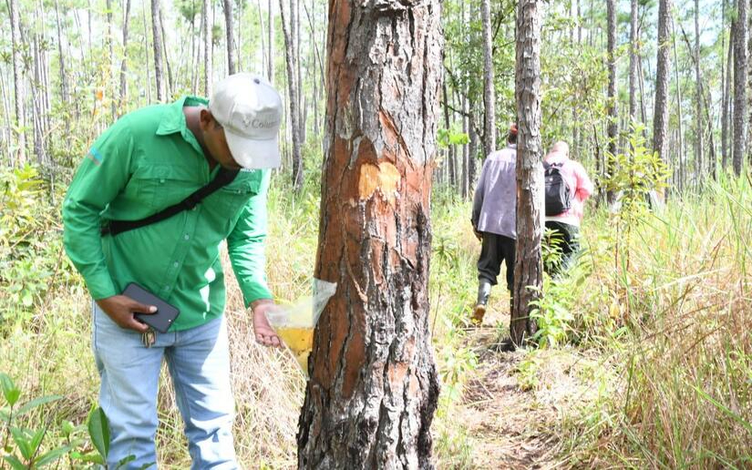 El objetivo de la visita fue verificar los avances en la implementación de prácticas de manejo sostenible de los recursos forestales, en las 460 hectáreas de la finca que se encuentran arborizadas con la especie Pino caribeño, una especie que se ha convertido en un recurso clave para la Familia Miranda, quienes aprovechan la resina de los árboles para generar ingresos económicos adicionales.