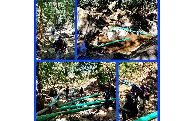 Para esto fue necesario el traslado a hombro de tuberías y accesorios para lograr la conexión de esta fuente de agua con la Planta Potabilizadora, y de esta forma lograr el abastecimiento a las familias de esta ciudad.