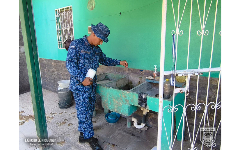 El Ejército de Nicaragua consecuente con el lema de que “Somos el Pueblo mismo uniformado trabajando en su propio beneficio”, del 17 al 21 de marzo del 2025, a través del Segundo Batallón de Tropas Navales, en coordinación con el Ministerio de Salud (MINSA), participó en jornada de abatización en diferentes barrios del municipio de Nagarote, departamento de León, con el objetivo de eliminar criaderos de mosquitos transmisores del dengue y otras enfermedades.