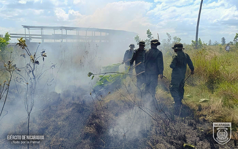 El Ejército de Nicaragua consecuente con el lema de que “Somos el Pueblo mismo uniformado trabajando en su propio beneficio”, el 22 de marzo de 2025, a través del Batallón Ecológico “BOSAWAS”, participó en sofocación de incendio agropecuario en el barrio Los Pinos, comunidad de Alamikamba, municipio de Prinzapolka, Región Autónoma de la Costa Caribe Norte, logrando extinguir un fuego en un área de 2 manzanas de maleza.