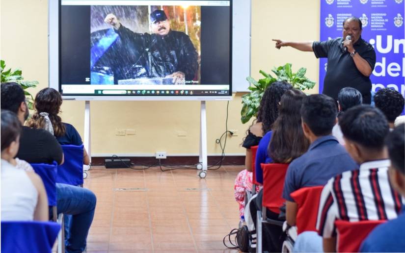 “Son jóvenes comprometidos con esa lucha permanente frente a la desinformación, comunicadores enfocados, en llevar al pueblo las verdades verdaderas. Ustedes, muchachos y muchachas, son privilegiados porque nuestro Buen Gobierno Revolucionario garantiza estos espacios de intercambios, con especialistas que comparten sus conocimientos, para que se formen como grandes profesionales al servicio de nuestra Nicaragua Bendita y Siempre Libre”.