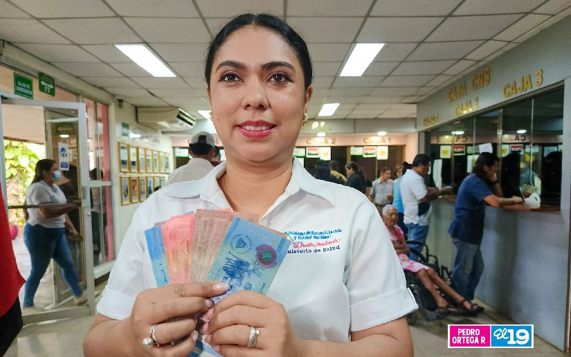 "Queremos agradecer a Dios que les da la sabiduría a nuestros Copresidentes, para dirigir muy bien el país, por siempre pensar en los trabajadores y darnos adelantado el pago del mes de abril", dijo Emperatriz Zeledón, de la Dirección de Insumos Médicos del Minsa.