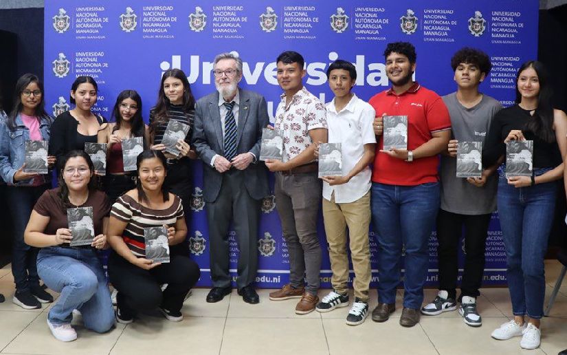 Con un emotivo acto presencial y virtual más de 2,000 miembros de la comunidad universitaria participaron en la presentación del libro “Historia de un corresponsal de guerra mexicano” del escritor Guillermo Zamora, actual Embajador de los Estados Unidos Mexicanos en Nicaragua quien en 1980 fue corresponsal de guerra durante la agresión imperialista en la Primera Etapa de la Revolución.