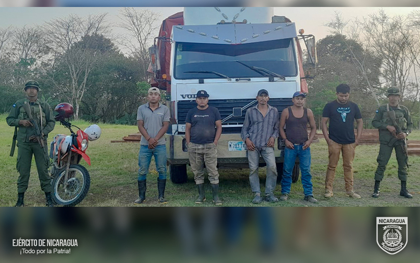 El Ejército de Nicaragua consecuente con el lema de que “Somos el Pueblo mismo uniformado trabajando en su propio beneficio”, el 5 de abril de 2025, a través de servicio operativo del Batallón Ecológico “BOSAWAS”, en los sectores de Santa Rosa de Paraska, ubicado a 20 kilómetros al noroeste del municipio de Mulukukú, Región Autónoma de la Costa Caribe Norte, retuvo a 5 ciudadanos nicaragüenses, a quienes se les ocupó 9,559 pie tablar de madera de la especie Cedro Real y Cedro Macho, la que era trasladada de manera ilegal a bordo de 1 camión placa M 283742, de igual manera, se les ocupó 1 motocicleta placa M 308357 la que era utilizada para actividades ilícitas.