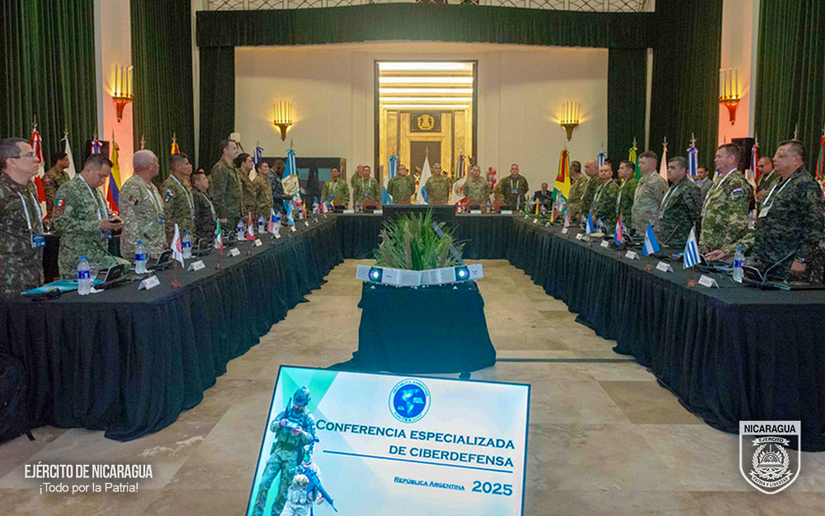 En cumplimiento a las órdenes del Comandante en Jefe de las Fuerzas Militares del Ejército de Nicaragua, General de Ejército Julio César Avilés Castillo, para avanzar en el fortalecimiento de las relaciones de amistad y cooperación con fuerzas armadas y ejércitos amigos; del 7 al 11 de abril de 2025, el Ejército de Nicaragua participó en la V Conferencia Especializada “Desarrollo de las capacidades de Ciberdefensa”, realizada en la ciudad de Buenos Aires, República Argentina.