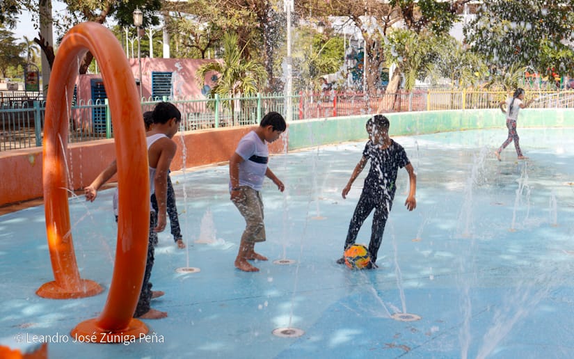 “Ando con mi hija y ella fue la que me pidió que la trajera aquí para refrescarse porque en estos días hace demasiado calor. Me dijo mamá vamos al parque Luis Alfonso, ahí hay agua y me puedo bañar, ella ya ha venido varias veces, le gusta. Este lugar me parece bien porque primero vienen a refrescarse y luego a montarse a los juegos, aquí nos sale más económico”, dijo doña Migdalina, quien aprovechó su día libre para sacar a pasear a su niña.