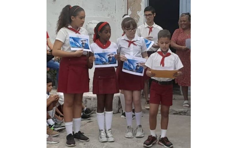 En la Jornada “Sandino en Nosotros” realizada conjuntamente por la Embajada de Nicaragua y el Instituto Cubano de Amistad con los Pueblos, iniciada el 21 de Febrero de 2025 en el 91 Aniversario del paso a la inmortalidad de nuestro Héroe Nacional Augusto C. Sandino y que concluirá el 18 de Mayo, en el día que se conmemora el natalicio del General de los Hombres y Mujeres Libres, participó la Escuela Primaria “26 de Julio” de Matanzas.