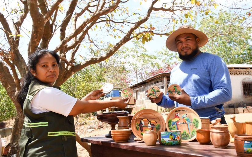 Fortaleciendo prácticas sostenibles en el sector forestal, el Ministerio del Ambiente y de los Recursos Naturales MARENA, realizó una visita al emprendimiento de artesanías “Tesoros Hechos a Mano” del protagonista José Guerrero, habitante de la comunidad La Pintada, en el municipio de Nandaime, Granada.