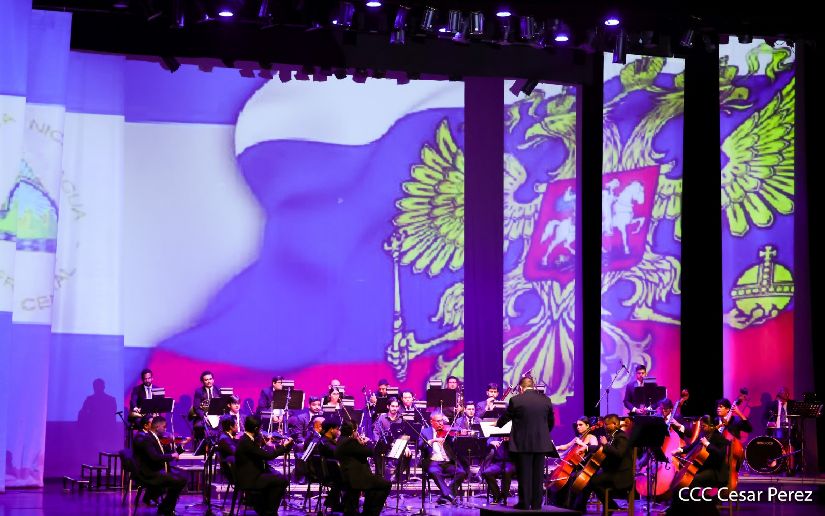 En el marco de la conmemoración del 80 aniversario de la Gran Victoria sobre el fascismo, la Camerata Bach y la Orquesta Sinfónica Juvenil de Nicaragua Rubén Darío ofrecieron un concierto de música folklórica y tradicional de Rusia en la Sala Mayor del Teatro Nacional en Managua.
