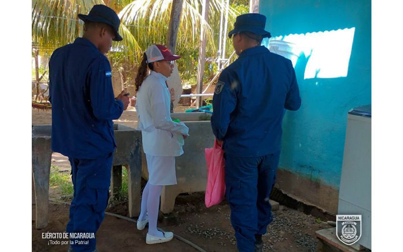 El Ejército de Nicaragua consecuente con el lema de que “Somos el pueblo mismo uniformado trabajando en su propio beneficio”, el 8 de mayo de 2025, a través del Destacamento Naval de Aguas Interiores “Comandante Hilario Sánchez Vásquez”, en coordinación con el Ministerio de Salud (MINSA), participó en jornada de abatización, en diferentes barrios de la comunidad El Menco, municipio de Buenos Aires, departamento de Rivas.