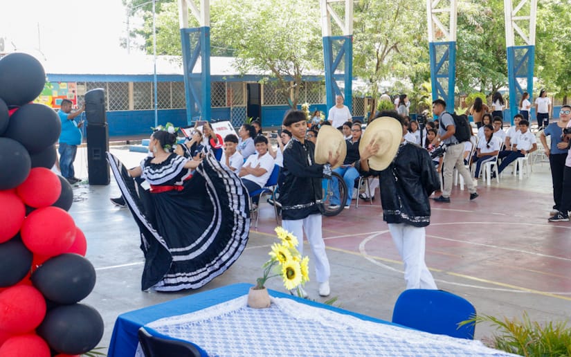Estudiantes del Colegio Experimental México, llevaron a cabo una revista cultural con bailes, poesía y lectura de la vida del General Augusto C. Sandino, al cumplirse este 18 de mayo 130 años de su natalicio.