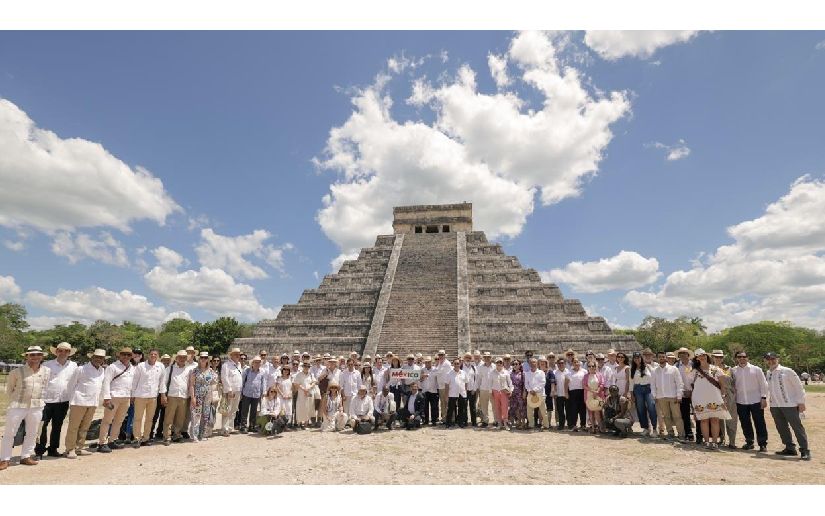El Secretario de Relaciones Exteriores de México, Juan Ramón de la Fuente; la Subsecretaria para América latina y El Caribe, Raquel Serur Smeke; el Gobernador de Yucatán, Joaquín Díaz Mena; la Secretaria de Turismo, Josefina Rodríguez Zamora; el Director General del Instituto Nacional de Antropología e Historia (INAH), Diego Prieto y el General de Brigada Intdte. DEM. Oscar David Lozano Águila, Director General del Tren Maya, acompañaron a Representantes de 64 países durante la visita que se realizó el 18 y 19 de mayo de 2025, para conocer los proyectos del Tren Maya y la Ampliación de Puerto Progreso, en el Estado de Yucatán, México.